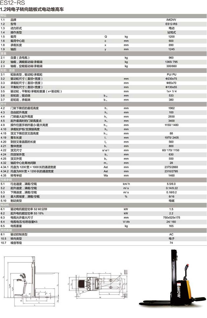 1.2噸電子轉向踏板式電動堆高車 ES12-RS